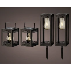 Lumineo Solar Set Met Tuinlamp En Lantaarn – LED – D10.5 X H80cm – Zwart – 4st.